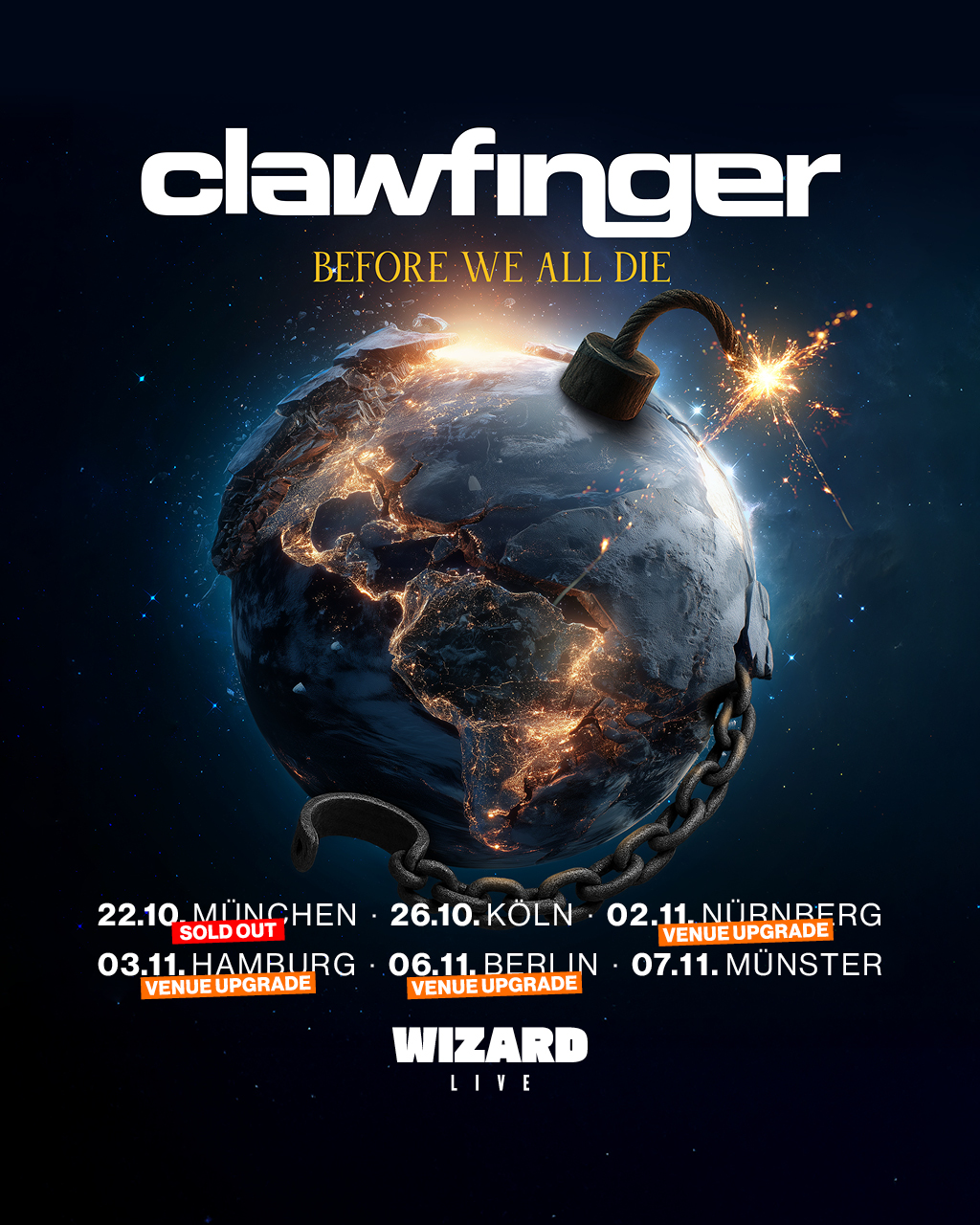 Laut, wütend, düster, humorvoll und brutal ehrlich – mit ihrer Before We All Die Tour kehren CLAWFINGER 2026 auf deutsche Bühnen zurück. Die skandinavischen Crossover-Pioniere präsentieren sich dabei in ihrer markanten Form und liefern jene kompromisslose Energie, die ihren internationalen Status geprägt hat. Die Tour, die die Band ab dem 22. Oktober 2026 in sechs deutsche Städte führt, kombiniert die Essenz von CLAWFINGER: harte Riffs, klare politische Haltung und eine Intensität, die sich ideal als Tourprofil für die Website eignet.