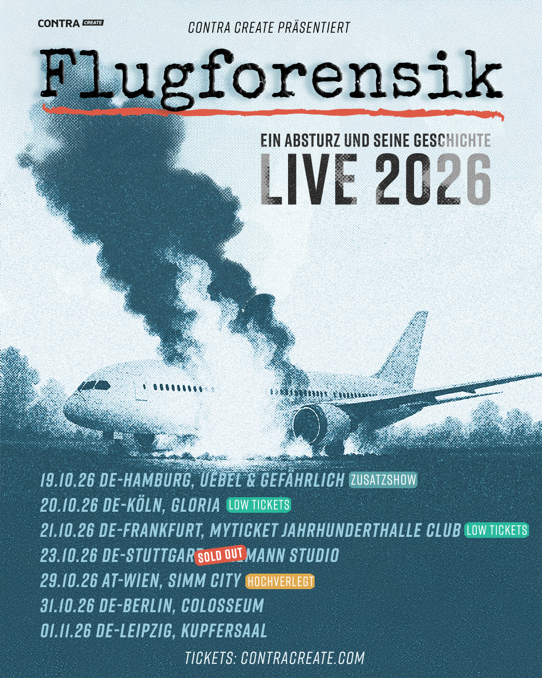 Nach der erfolgreichen ersten Tournee geht Flugforensik Live im Herbst 2026 erneut auf Reisen – diesmal mit Stopps u.a. in Frankfurt, Leipzig und Wien.