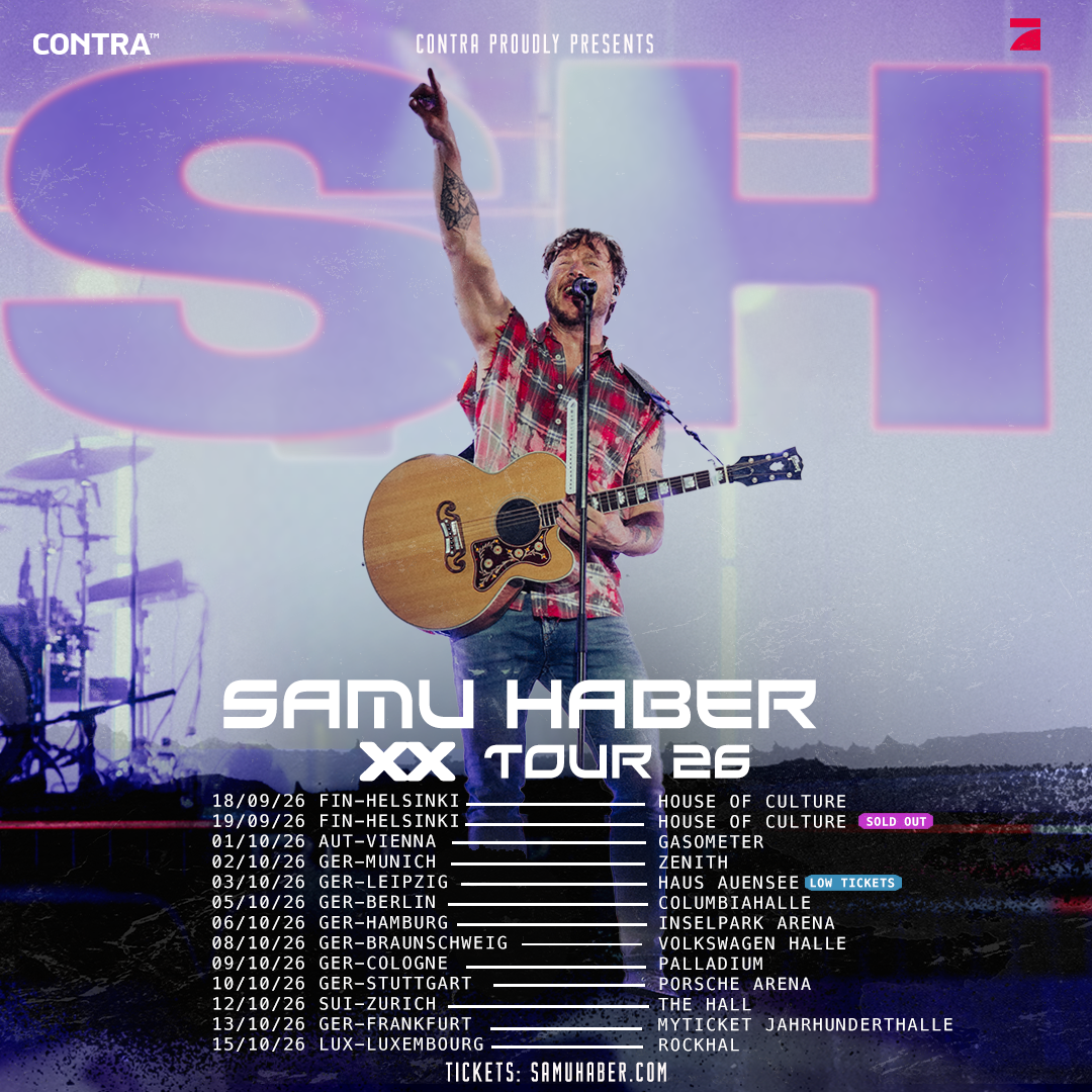Nach einem unvergesslichen Sommer 2025 voller magischer Konzerte, über 100,000 verkauften Tickets und inspirierten Momenten geht Samu Haber 2026 endlich wieder auf große Tour durch die Hallen Europas.